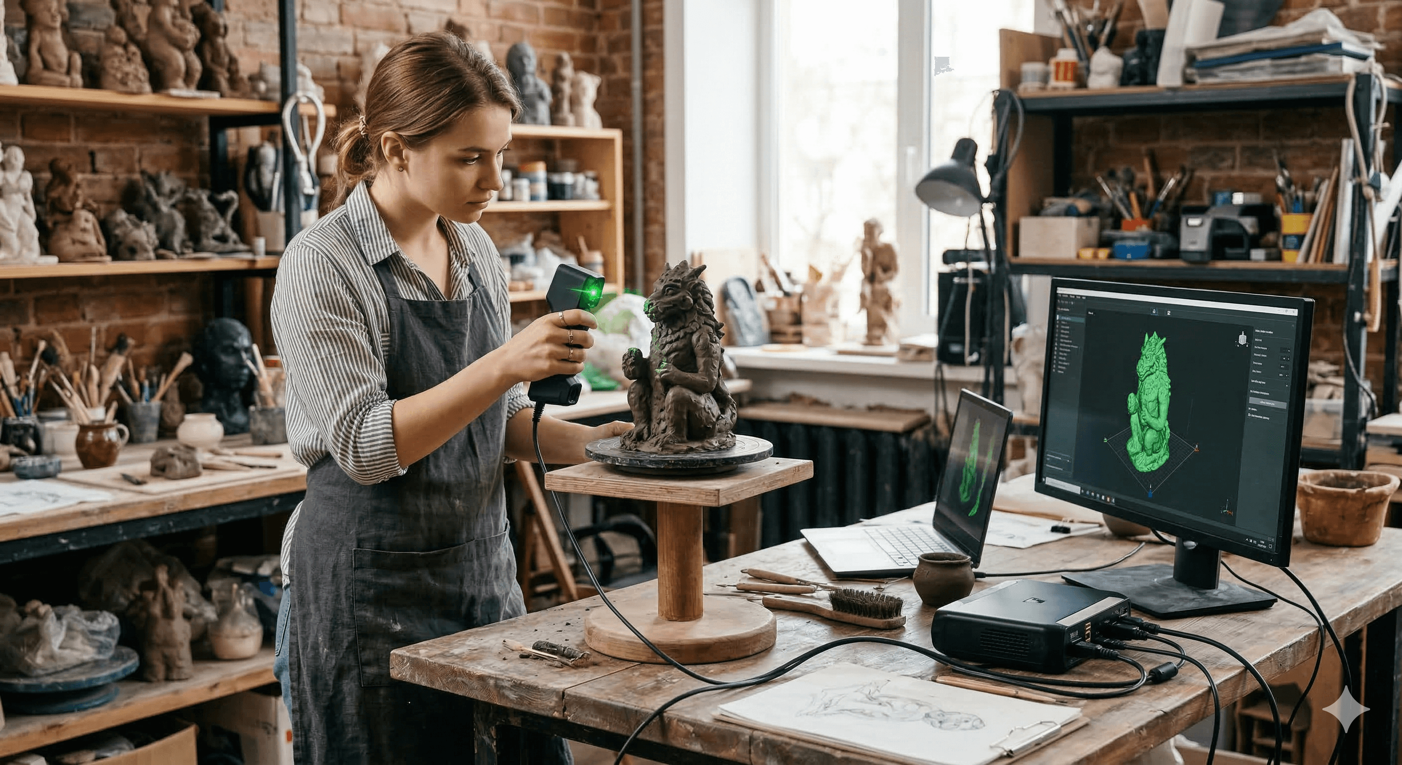 Digitalizamos piezas en cera o arcilla con precisión milimétrica, capturando texturas manuales para escalar obras artísticas sin perder detalle.